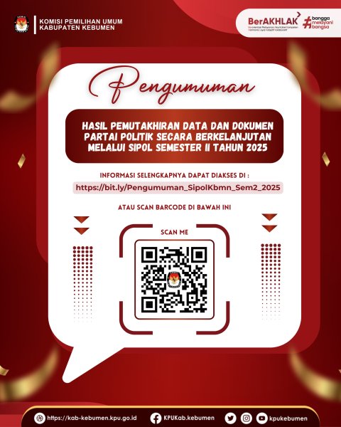 PENGUMUMAN HASIL PEMUTAKHIRAN DATA DAN DOKUMEN PARTAI POLITIK SECARA BERKELANJUTAN MELALUI SIPOL SEMESTER II TAHUN 2025