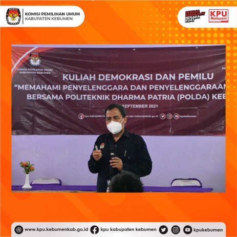 KPU Kabupaten Kebumen bekerjasama dengan Politeknik Dharma Patria Kebumen menggelar kegiatan pendidikan pemilih dalam bentuk Kuliah Demokrasi dan Pemilu. Kegiatan yang berlangsung selama empat hari (21-24/09) ini bertujuan untuk memberi pemahaman kepada pemilih, khususnya pemilih muda, terkait penyelenggara dan penyelenggaraan pemilu. Anggota KPU Kebumen Divisi Sosdiklih, Parmas dan SDM, Agus Hasan Hidayat, S.Si, MT menjelaskan bahwa kegiatan ini merupakan rangkaian program pendidikan pemilih yang dilaksanakan KPU Kabupaten Kebumen. “ Kuliah Demokrasi dan Pemilu ini merupakan upaya KPU dalam menyasar pemilih muda agar mendapat pemahaman yang baik terkait penyelenggara dan mekanisme pelaksanaan pemilu, sehingga harapannya ke depan dapat berpartisipasi lebih dalam kepemiluan,” ujarnya. Lebih lanjut Agus Hasan menjelaskan bahwa Polda merupakan kampus pertama yang berkesempatan melaksanakan Kuliah Demokrasi dan Pemilu bersama KPU Kebumen. Selanjutnya Kuliah Demokrasi dan Pemilu juga akan dilaksanakan dengan bekerjasama dengan beberapa Universitas dan Sekolah Tinggi di wilayah Kabupaten Kebumen yaitu, Universitas Putra Bangsa (UPB), Universitas Muhammadiyah Gombong (Unimugo), Universitas Ma’arif Nahdlatul Ulama (UMNU) dan Institut Agama Islam Nahdlatul Ulama (IANU). Pembukaan Kuliah Demokrasi dan Pemilu dilaksanakan pada Selasa (21/09) dengan penandatanganan MoU antara KPU Kabupaten Kebumen dan Polda Kebumen. Kegiatan pembukaan yang dilaksanakan secara tatap muka ini disaksikan oleh mahasiswa dengan jumlah terbatas dan menerapkan protokol kesehatan secara ketat. Direktur Politeknik Dharma Patria Kebumen, Ari Waluyo, S.ST, MM, MOS, dalam sambutannya menyambut baik kerjasama ini dan berharap mahasiswa Polda Kebumen dapat mengambil manfaat yang sebesar-besarnya, khususnya dalam hal kepemiluan. Kuliah perdana diisi dengan pemberian materi oleh Dosen Polda Kebumen, Dra. Sotya Partiwi, MM yang menjelaskan tentang Demokrasi dan Sejarahnya. Selanjutnya dilanjutkan materi dari Anggota KPU Kebumen, Agus Hasan Hidayat, S.Si, MT tentang Demokrasi di Indonesia dan materi tentang Pemilu Universal dan Sejarah Pemilu di Indonesia disampaikan oleh Anggota KPU Kebumen, Danang Munandar, SE. Sesi perkuliahan kemudian dilanjutkan 3 hari berturut-turut (22-24/09) melalui metode daring yang difasilitasi oleh Polda Kebumen. Perkuliahan diisi dengan pemberian materi dari seluruh Ketua dan Anggota KPU Kebumen sehingga total materi yang disampaikan dalam rangkaian Kuliah Demokrasi dan Pemilu ini berjumlah 12 materi. Yulianto, S.Kom, M.Kom menyampaikan materi tentang Sistem Pemilu di Indonesia dan Memahami Pemangku Kepentingan dalam Pemilu. Solahudin, ST menyampaikan materi terkait Tahapan Pemilu dan Pilkada di Indonesia dan Disabilitas dan Hak Politiknya dalam Penyelenggaraan Pemilu dan Pilkada. Dzakiatul Banat, SE, M.Pd menyampaikan materi tentang Metode Konversi Suara dalam Sistem Pemilu di Indonesia dan Isu Gender dalam Penyelenggaraan Pemilu dan Pilkada. Danang Munandar, SE menyampaikan materi tentang Penyelenggara Pemilu dan Pilkada di Indonesia serta Relasinya dan Partisipasi Masyarakat dalam Pemilu dan Pilkada. Selanjutnya materi terakhir tentang Kesuksesan Penyelenggaraan Pemilu dan Pilkada disampaikan oleh Agus Hasan Hidayat, S.Si, MT. Proses perkuliahan dipandu oleh moderator Wenny Marlini, SE, MM berjalan dengan lancar. Mahasiswa yang mengikuti perkuliahan nampak antusias dengan mengajukan beberapa pertanyaan khususnya terkait teknis kepemiluan serta peran kaum muda dalam pelaksanaan pemilu. Selanjutnya peserta juga akan menerima sertifikat kepesertaan dalam Kuliah Demokrasi dan Pemilu dari KPU Kabupaten Kebumen.