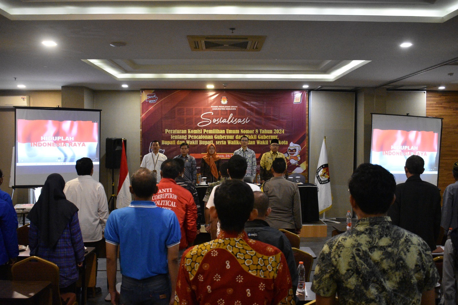 KPU Kabupaten Kebumen menggelar kegiatan Sosialisasi Peraturan KPU Nomor 8 Tahun 2024 tentang pencalonan gubernur dan wakil gubernur, bupati dan wakil bupati, serta walikota dan wakil walikota, Jumat (26/07/2024). Acara ini berlangsung di Hotel Grand Kolopaking, Kebumen, dan dihadiri oleh berbagai pihak penting dalam pelaksanaan pemilu di daerah ini.
