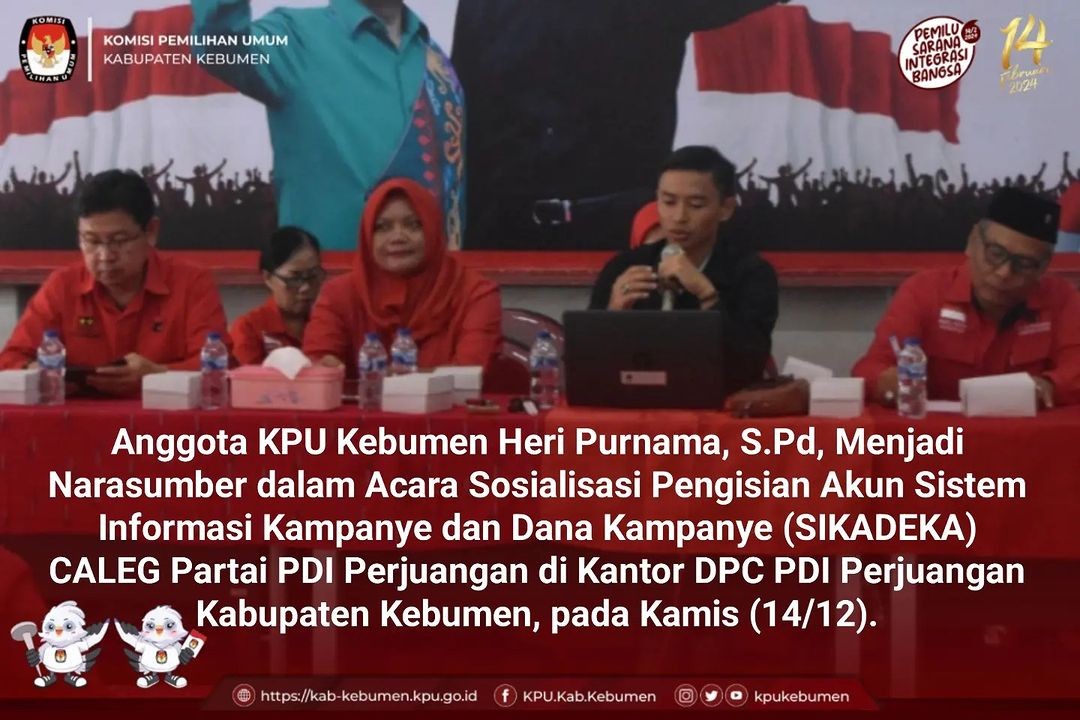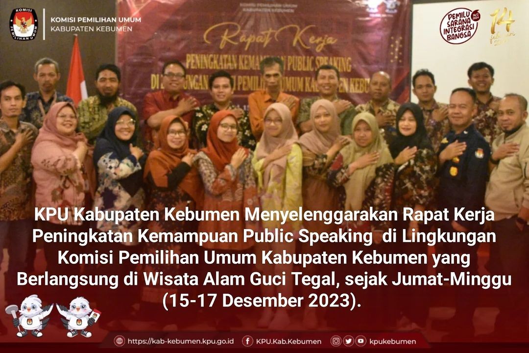 KPU Kabupaten Kebumen hadiri acara pisah sambut KPU Kebumen periode 2018-2023 dengan KPU Kebumen Periode 2023-2028 yang diselenggarakan oleh Pemerintah Kabupaten kebumen di gedung pendopo rumah dinas Kabupaten Kebumen, rabu (20/12) dihadiri oleh Forkompimda Kabupaten Kebumen, Bawaslu Kebumen, Satpol PP Kebumen, Asisten Pemerintahan dan Kesejahteraan Rakyat Setda Kabupaten Kebumen, Asisten Perekonomian dan Pembangunan Sekda Kabupaten Kebumen, Asisten Administrasi Umum Sekda Kabupaten Kebumen, Staff Ahli Bupati Kebumen, Komisioner KPU Kabupaten Kebumen periode 2018-2023 dan dinas lain di Kabupaten Kebumen. Yulianto, S.Kom.,M.Kom, Danang Munandar, S.E, Solahidin, S.T, Yulianto yang mewakili komisioner KPU Kabupaten Kebumen periode 2018-2023 menyampaiakan pesan kan kesanya selama menjabat menjadi komisioner KPU Kabupaten Kebumen, yulianto menyampaikan bahwa per tanggal 23 Oktober 2023 masa jabatan komisioner periode 2018-2023 telah selesai dan bersyukur penerusnya untuk komisioner periode 2023-2028 yang sudah lama berkiprah di bidang kepemiluan dan yakin akan dapat menjalankan tugasnya dengan baik. Yulianto meminta maaf atas semua kekurangan dalam proeses penyelenggaran baik secara pribadi maupun secara kelembagaan. Dzakitaul Banat, S.E.,M.Pd selaku Ketua KPU Kabupaten Kebumen periode 2023-2028 menyampaiakan kesan dan pesannya, diawali dengan memperkenalkan komisioner KPU Kabupaten Kebumen dari Dzakiatul Banat, S.E.,M.Pd selaku Ketua dan divisi Keuangan, Umum dan Logistik, Heri purnama, S.Pd selaku Divisi Teknis Penyelenggaran, Joko Paripurno, M.Pd selaku divis Data dan Informasi, Muhammad Sobir, M.Pd divisi Sosialisasi, Pendidikan Pemilih, Partisipasi Masyarakat dan Hupmas, Endra Prasetia, M.Pd divisi Hukum dan SDM. Dzakiatul banat menambahkan tahapan saat ini sudah memasuki tahapan kampanye yang dimulai tanggal 28 November 2023, dan saat ini 55 hari menuju tanggal 14 Februari 2024 sebagai hari pemungutan suara,mudah-mudahan dengan dukungan dari bapak/ibu, rekan-rekan serta pemerintah daerah baik di tingkat kecamatan maupun desa, selain itu di tahun 2024 akan ada tahapan yang beririsan antara tahapan pilkada dan tahapan pemilu 2024 harapanya dengan adanya dukungan dari pemerintah semua tahapan akan berjalan dengan lancar. Arif Sugiyanto, S.H.,M.H menyampaiakan kepada komisioner KPU Kabupaten Kebumen untuk selalu menjaga kesehatan dalam menjalankan tugasnya. Setiap pekerjaan yang dkerjakan dengan sungguh-sungguh hasilnya akan lebih baik. Arif sugiyanto memberikan ucapan terimakasih atas dedikasinya kepada penyelenggara pemilu dalam menjalankan tugasnya dengan baik, dimana pada tahapan sebelumnya pilkada 2020 adanya pandemi covid-19. Dalam penyelenggaraan pemilu sebelumnya juga berterimakasih kepada bawaslu kebumen, TNI dan polri yang telah menjaga keamanaan dalamm penyelenggaran tersebut hingga taka da pelanggaran yang berarti. Acara dilanjutkan pemberian cinderamata kepada komisioner KPU Kabupaten Kebumen periode 2018-2013 serta periode 2023-2028 oleh KPU Kabupaten Kebumen dan selanjutnya foto bersama.