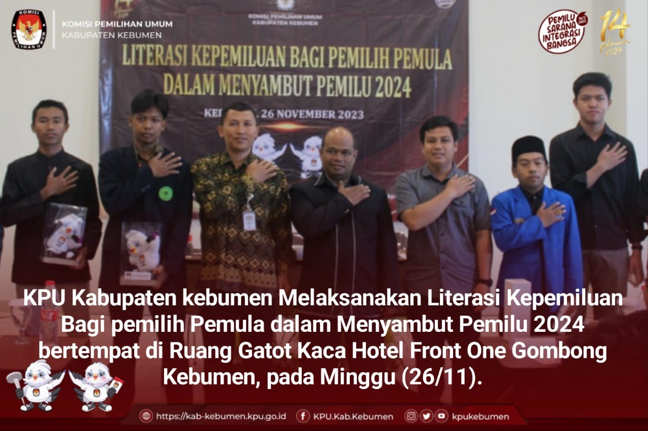 KPU Kabupaten kebumen Melaksanakan Literasi Kepemiluan Bagi pemilih Pemula dalam Menyambut Pemilu 2024 bertempat di Ruang Gatot Kaca Hotel Front One Gombong Kebumen, pada Minggu (26/11).