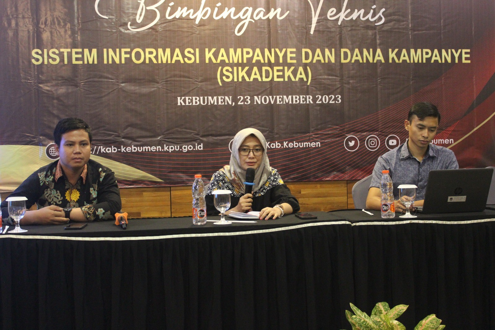 Ketua KPU Kabupaten Kebumen, Dzakiatul Banat dalam sambutannya mengharapkan agar para peserta memperoleh manfaat dari kegiatan ini. Kemudian, kegiatan dilanjutkan oleh penyampaian materi dari setiap narasumber, yaitu Bapak Risson P. Sihotang, S.Sos., M.Si selaku Kepala Badan Kesatuan Bangsa dan Politik Kabupaten Kebumen yang menyampaikan materi tentang Memaksimalkan Partisipasi Perempuan dalam Pemilu Serentak Representasi Demokrasi. Narasumber berikutnya, masih dari instansi yang sama, yaitu Bapak Khusnul Hadi, S.H. yang menjelaskan tentang Peran Masyarakat Dalam Mensukseskan Pemilu 2024. Kemudian, Narasumber ketiga yaitu Ibu Muinatul Khoiriyah, S.Pd.I. selaku Founder Rumah Inklusif, yang memberikan materi tentang Urgensi Suara Pemilih Perempuan dalam Pemilu 2024. Pada intinya, para narasumber mengajak para perempuan untuk menjadi pemilih cerdas, agar dapat memilih pemimpin dan wakil rakyat yang terbaik pada Pemilu 2024 mendatang.