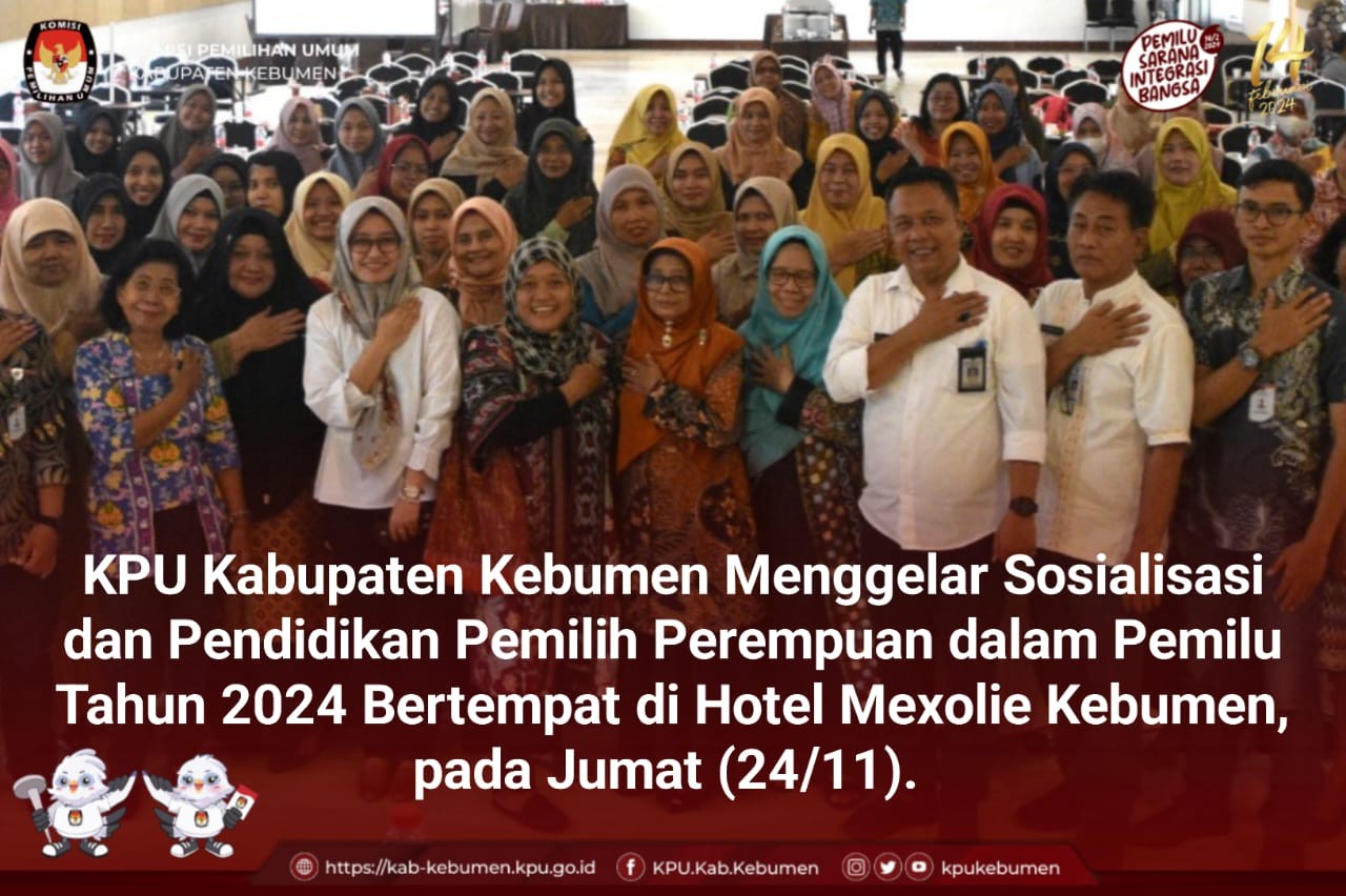 KPU Kabupaten Kebumen Menggelar Sosialisasi dan Pendidikan Pemilih Perempuan dalam Pemilu Tahun 2024 bertempat di Hotel Mexolie Kebumen, pada Juma t (24/11).