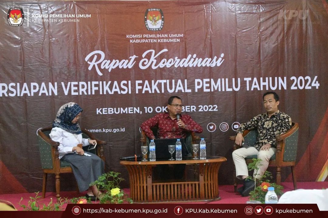 Kebumen – KPU Kabupaten Kebumen menggelar Rapat Koordinasi Persiapan Verifikasi Faktual Partai Politik Calon Peserta Pemilu dan Pemilihan Tahun 2024 bertempat di Ruang Jatijajar, Hotel Candisari Kebumen, Senin (10/10).