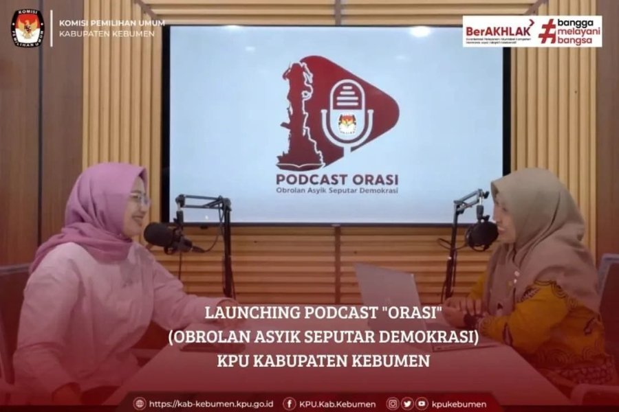 KPU Kebumen Luncurkan Podcast “ORASI” sebagai Media Edukasi Demokrasi Kebumen – Komisi Pemilihan Umum (KPU) Kabupaten Kebumen resmi meluncurkan program podcast terbaru bertajuk ORASI (Obrolan Asyik Seputar Demokrasi) melalui kanal YouTube resminya. Program ini dirancang sebagai media edukasi dan ruang dialog santai mengenai isu-isu demokrasi dan kepemiluan. Pada episode perdana yang tayang pada Jumat 13 Juni 2025, Ketua KPU Kabupaten Kebumen Dzakiatul Banat, hadir sebagai narasumber. Beliau berbincang bersama host Irarina Risnawati seputar peran strategis KPU, pentingnya partisipasi masyarakat dalam pemilu, serta upaya membangun kesadaran demokrasi di tingkat lokal. Dzakiatul Banat menjelaskan bahwa tugas KPU tidak hanya dilaksanakan saat tahapan Pemilu atau Pilkada berlangsung. “KPU bekerja sepanjang tahun. Di masa tahapan, kami menjalankan berbagai proses seperti pemutakhiran data pemilih, pencalonan, kampanye, pemungutan dan penghitungan suara hingga penetapan hasil. Sementara di luar tahapan, kami tetap aktif melakukan pendidikan pemilih, sosialisasi, pengelolaan data dan arsip kepemiluan, serta evaluasi dan perencanaan untuk penyelenggaraan berikutnya,” ujarnya. Podcast ORASI ini menjadi salah satu inovasi KPU Kebumen dalam memperluas jangkauan informasi kepada masyarakat, khususnya pemilih pemula dan generasi muda, melalui media digital yang lebih akrab dan menarik. Di akhir tayangan, masyarakat diajak untuk ikut mendukung program ini dengan cara menyukai, berkomentar, berlangganan kanal YouTube KPU Kebumen, serta membagikan video ke lebih banyak orang. KPU berharap ORASI dapat menjadi jembatan komunikasi yang efektif antara lembaga penyelenggara pemilu dan publik, guna mewujudkan demokrasi yang sehat dan partisipatif.