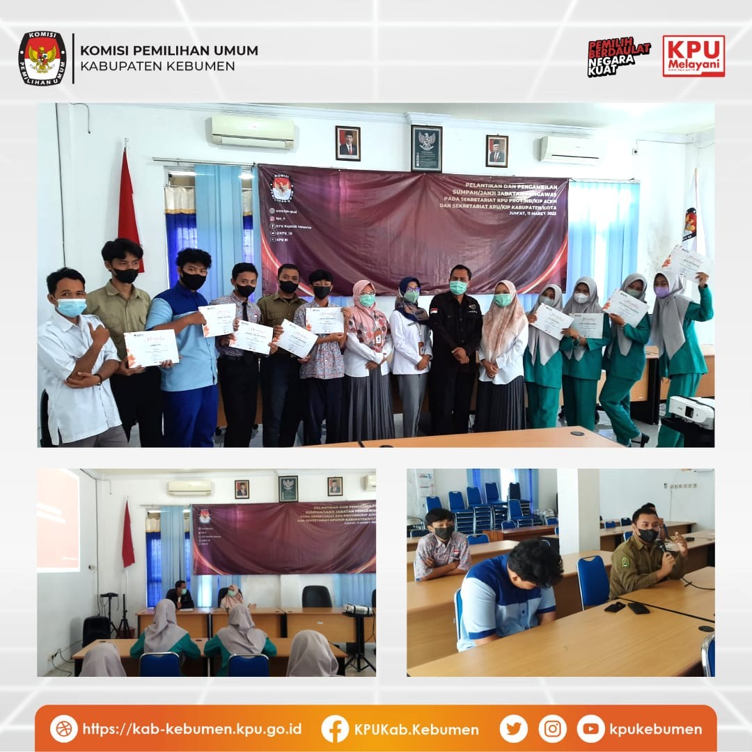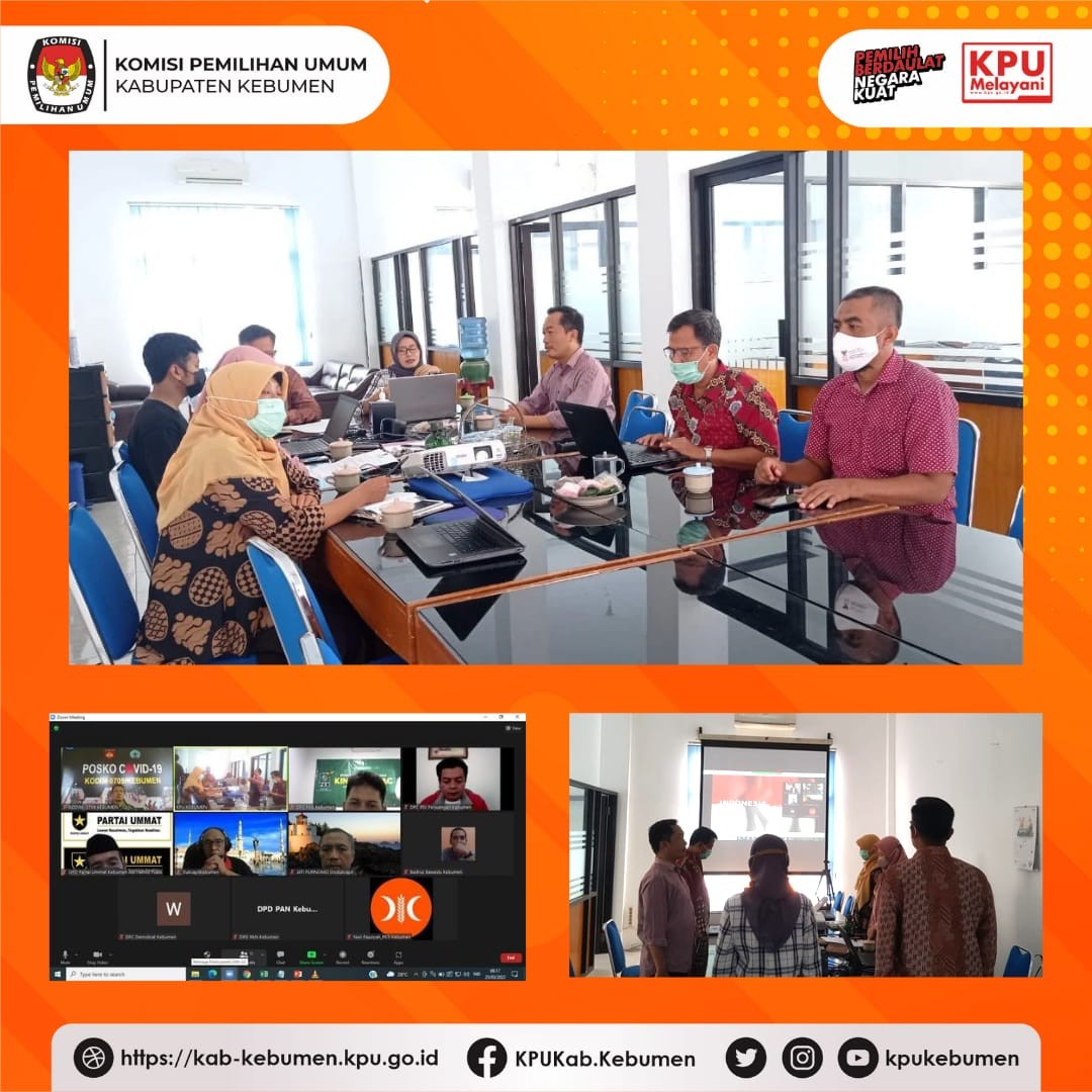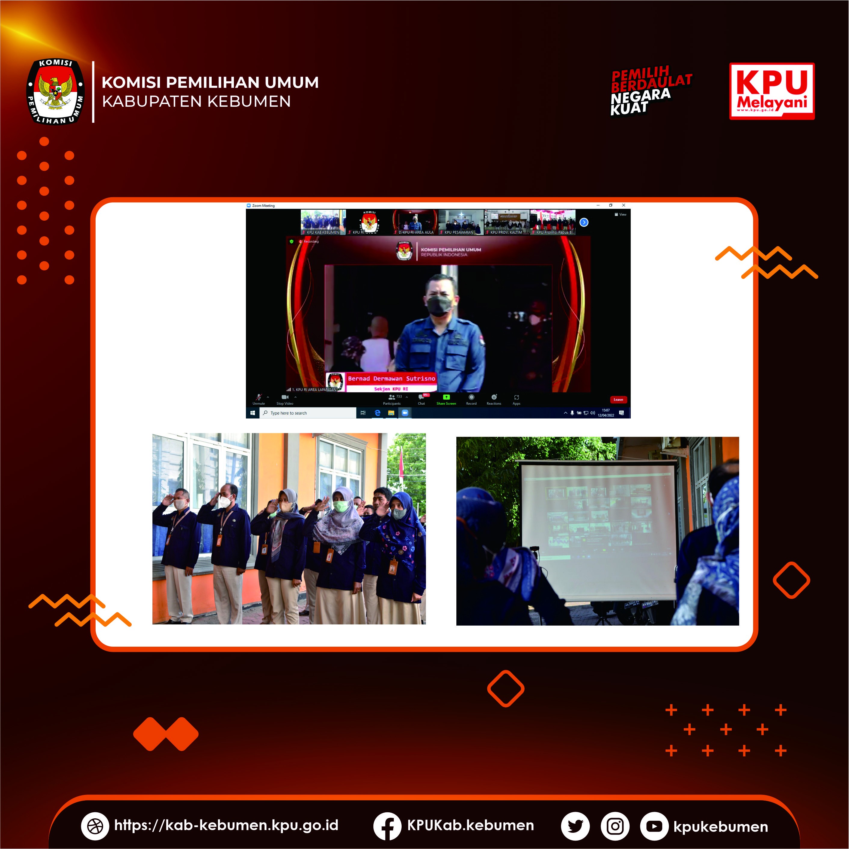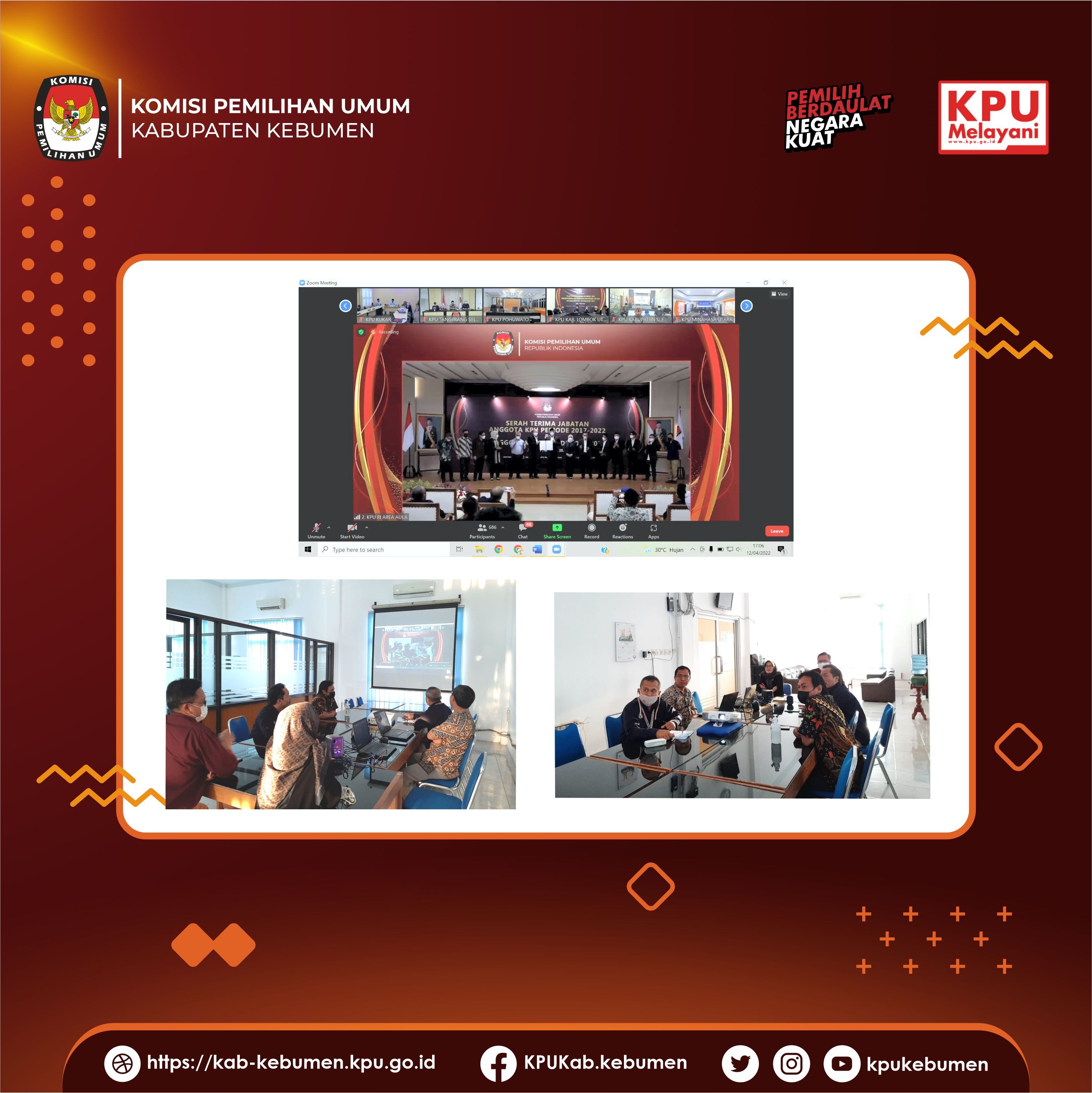 Kebumen – Masih dalam rangkaian acara yang sama, usai mengikuti Apel Penerimaan Anggota KPU RI Periode 2022-2027, Ketua dan Anggota KPU Kebumen beserta Sekretaris KPU Kebumen menyaksikan Serah Terima Jabatan Anggota KPU RI Periode 2022-2027 dan Anggota KPU RI Periode 2022-2027 secara daring yang diselenggarakan oleh KPU Republik Indonesia, Selasa (12/4) bertempat di Kantor KPU Kebumen. Acara diawali dengan penandatanganan Berita acara Serah Terima Jabatan dan Penyerahan Buku Memori Jabatan oleh Anggota KPU RI Periode 2017-2022 bersama Sekretaris Jenderal KPU RI, Bernad Dermawan Sutrisno kepada Anggota KPU RI Periode 2022-2027. Sebelumnya Anggota KPU RI Periode 2022-2027 dilantik secara langsung oleh Presiden Joko Widodo di Istana Kepresidenan Jakarta. Adapun tujuh Anggota KPU RI periode 2022-2027 yang dilantik, yaitu Betty Epsilon Idroos, Hasyim Asy’ari, Muhammad Afifuddin, Parsadaan Harahap, Yulianto Sudrajad, Idham Holik, dan August Mellaz. Pada moment Serah Terima Jabatan, Anggota KPU RI periode ini, Muhammad Afifuddin menyampaikan hasil pleno perdana yang menetapkan Hasyim Asy’ari sebagai Ketua KPU RI periode 2022-2027.