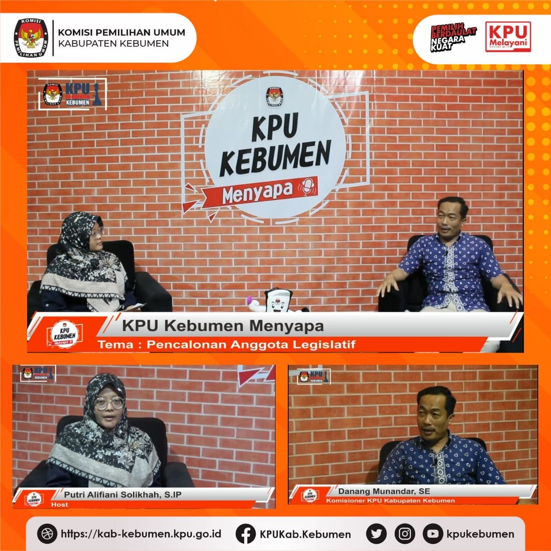 Kebumen – Talkshow KPU Kebumen Menyapa kali ini mengusung tema “Pencalonan Anggota Legislatif” dengan menghadirkan narasumber Anggota KPU Kabupaten Kebumen, Bapak Danang Munandar, SE dan dipandu langsung oleh Putri Alifiani Solikhah, Jumat (18/2). Sebagaimana diketahui bahwa telah ditetapkan hari pemungutan suara Pemilu Serentak 2024 akan dilaksanakan pada 14 Februari 2024, yang artinya bahwa Tahapan Pemilu dan Pemilihan akan dimulai salah satunya yaitu tahapan pencalonan. Menanggapi hal tersebut, Danang menyampaikan bahwa sampai saat ini masih menunggu Peraturan Komisi Pemilihan Umum (PKPU) tentang Tahapan, Program, dan Jadwal sebagai dasar acuan dalam pelaksanaan setiap tahapan. Lebih lanjut Danang menjelaskan tentang syarat yang dibutuhkan untuk mencalonkan diri, diantaranya Warga Negara Indonesia (WNI) dengan usia minimal 21 tahun yang merupakan anggota dari partai politik dan terdaftar sebagai pemilih. Mekanisme yang baik dalam tahapan pencalonan juga sangat berpengaruh bagi lancarnya pelaksanaan pemilu. Diakhir dialog Danang berharap warga Kebumen untuk aktif berpartisipasi dalam politik sebagai rasa kepemilikan terhadap bangsa dan negara khususnya untuk Kabupaten Kebumen dan salah satu bentuknya dapat aktif sebagai pemilih, penyelenggara maupun peserta pemilu. Saksikan selengkapnya video Talkshow KPU Kebumen Menyapa Ep.36, melalui tautan ini: https://youtu.be/SBFZai_kfkA