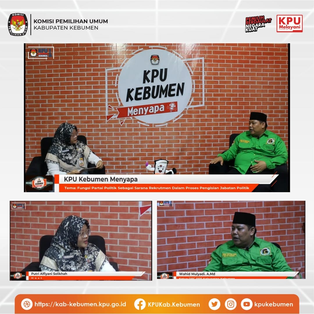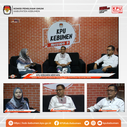 KPU Kabupaten Kebumen kembali menayangkan Program Talkshow KPU Kebumen Menyapa episode ke 34, yang dipandu oleh host Dyah Ayu Kartika Dewi, S.Sos, MA, selaku PLT Kasubbag Teknis dan Hupmas KPU Kabupaten Kebumen dengan tema “Informasi Seputar Pemilu dan Pemilihan Serentak 2024”, pada Jumat (4/2). Dalam kegiatan tersebut, terdapat 2 narasumber yang berasal dari internal KPU Kabupaten Kebumen. Yang pertama adalah Ketua KPU Kabupaten Kebumen, Yulianto, S. Kom, M.Kom. Dalam paparannya, Yulianto menyebutkan bahwa pemilu adalah gawe terbesar setelah perang. Dengan demikian, pemilu harus dirancang dengan maksimal agar prosesnya dapat berjalan maksimal pula. Seiring dengan itu, berdasarkan Rapat Dengar Pendapat (RDP) antara Pemerintah, Komisi II DPR dan para stakeholder terkait pada 24 Januari 2022 lalu, bahwa tanggal Pemilu dan Pemilihan Serentak 2024 telah ditetapkan. Pemilu Presiden dan Wakil Presiden serta Pemilu Anggota Legislatif dan DPD, akan dilaksanakan pada 14 Februari 2024. Sedangkan Pemilihan Kepala Daerah akan dilaksanakan pada 27 November 2024. Menyikapi hal tersebut, KPU Kabupaten Kebumen telah mempersiapkan diri menyongsong gelaran pesta demokrasi tersebut, dengan persiapan eksternal dan internal yang optimal. Dari sisi eksternal, salah satunya KPU Kabupaten Kebumen selalu berkoordinasi dengan Pemerintahan Daerah dalam penyediaan Dana Cadangan Pemilu. Adapun dari sisi internal, KPU Kabupaten Kebumen senantiasa melakukan penguatan kelembagaan, diantaranya melakukan pendidikan pemilih lewat berbagai program yang telah dijalankan dan juga akan melaksanakan kursus teknik kepemiluan bagi calon-calon penyelenggara pemilu yang digelar sebelum proses tahapan pemilu. Selanjutnya, narasumber kedua adalah Anggota Divisi Sosialisasi, Pendidikan Pemilih, Partisipasi Masyarakat dan Sumber Daya Manusia (SDM) KPU Kabupaten Kebumen, Agus Hasan Hidayat, S.Si, MT. Dalam penjelasannya, Agus memaparkan bahwa kunci sukses pemilu ada pada 3 pihak. Yang pertama adalah stakeholder utama pemilu yang terdiri dari KPU, Bawaslu dan DKPP. Ketiganya harus saling menguatkan satu sama lain dalam memastikan suksesnya pemilu. Selanjutnya adalah peserta pemilu, yang harus berintegritas dan melaksanakan kampanye secara baik, tidak menimbulkan perpecahan bangsa. Terakhir, adalah para pemilih yang cerdas, yang memilih berdasarkan kesadaran dan kedaulatannya sendiri, bukan karena iming-iming materi. Saksikan selengkapnya video Talkshow KPU Kebumen Menyapa Ep.34, melalui tautan ini: https://youtu.be/0aurhzjiWIg