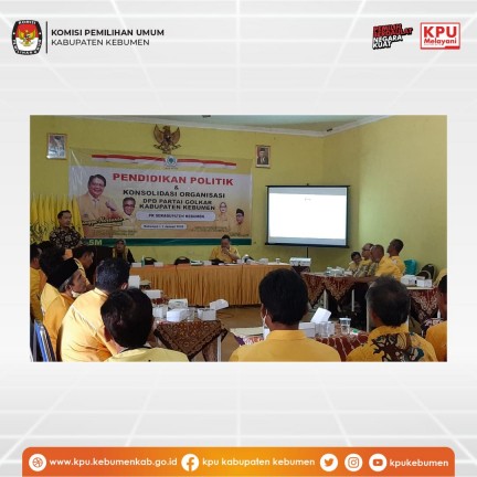 Kebumen – DPD Partai Golkar Kabupaten Kebumen mengundang KPU Kabupaten Kebumen sebagai narasumber dalam rangka Pendidikan Politik dan Konsolidasi Organisasi, Sabtu (1/1/2022). Hadir komisioner KPU Kabupaten Kebumen Divisi Teknis Penyelenggaraan Pemilu, Bapak Danang Munandar, SE. “KPU sangat mengapresiasi kegiatan yang diselenggarakan oleh DPD Partai Golkar Kabupaten Kebumen dalam rangka Pendidikan Politik bagi kadernya. Pendidikan politik merupakan salah satu fungsi dari partai politik sebagaimana termaktub di dalam UU No 2 tahun 2011 tentang perubahan atasi UU No 2 tahun 2008 tentang Partai Politik” ujar Danang sebelum memberikan paparan. Dalam paparannya, Danang menjelaskan seputar pendaftaran, verifikasi, dan penetapan partai politik yang mengacu pada UU No 7 tahun 2017, PKPU No 6 tahun 2018, serta Putusan MK Nomor 55/PUU-XVIII/2020. Salah satu tahapan di pelaksanaan Pemilu 2024 adalah pendaftaran partai politik peserta pemilu DPR dan DPRD, yang kemudian diverifikasi baik verifikasi administratif dan verfikasi faktual. Dengan adanya Putusan MK Nomor 55/PUU-XVIII/2020 maka partai politik yang telah lulus verifikasi Pemilu 2019 dan lolos atau memenuhi ketentuan Parliamentary threshold pada Pemilu 2019 tetap diverifikasi secara administrasi namun tidak diverifikasi secara faktual. Dan untuk partai politik yang pada pemilu 2019 tidak lolos atau tidak memenuhi ketentuan Parliamentary threshold, serta partai politik baru yang ditetapkan oleh keputusan Menteri Hukum dan Ham diharuskan dilakukan verifikasi baik secara administrasi dan secara faktual. Danang juga menambahkan terkait penggunaan aplikasi Sistem Informasi Partai Politik (SIPOL), untuk efektifitas pemenuhan syarat pendaftaran. Mekanisme penyerahan syarat pendaftaran dilakukan secara sentralistik dengan memanfaatkan aplikasi SIPOL. KPU membuka akses SIPOL selama 120 (seratus dua puluh) hari sebelum waktu pendaftaran. Selama masa persiapan, Helpdesk membuka layanan konsultasi dan membantu partai politik untuk memasukkan data-data persyaratan pendaftaran ke dalam SIPOL. KPU melalui Helpdesk akan memberi akses SIPOL kepada partai politik yang memenuhi persyaratan.