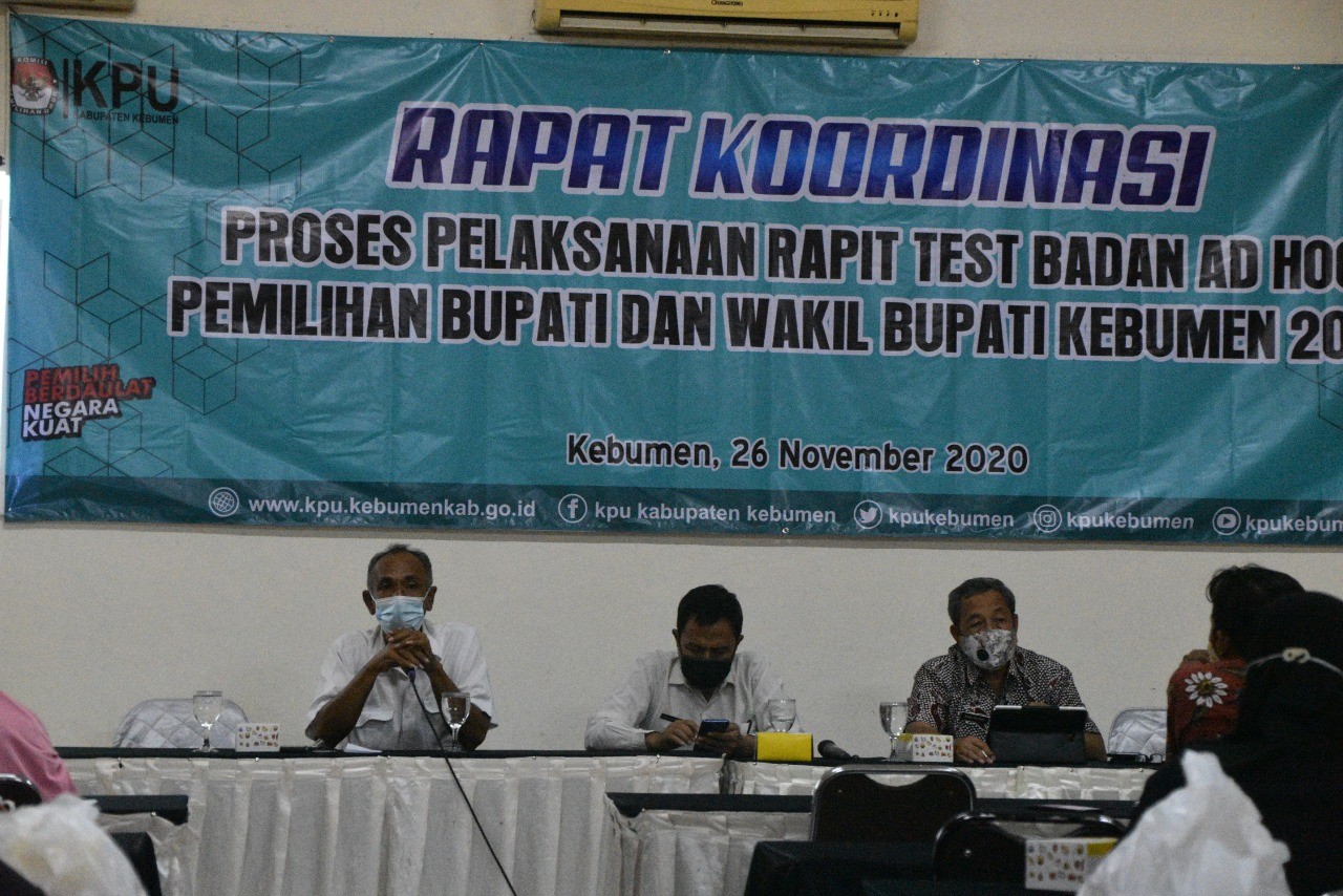 Puncak penyelenggaraan Pilbup Kebumen Tahun 2020 yakni tanggal 9 Desember kurang 5 hari lagi, KPU mengundang media cetak dan elektronik sebagai mitra dalam penyelenggaraan Pilkada di hotel Mexolie kebumen. Agenda kegiatan adalah media gathering dan penyampaian informasi kesiapan penyelenggaraan Pilbup Kebumen 2020. Beberapa hal yang dapat disampaikan terkait hal tersebut adalah Pertama, Kesiapan pendataan pemilih, seperti diketahui penetapan DPT Pilbup Kebumen sudah dilaksanakan pada tanggal 14 Oktober 2020 yakni sebanyak 1.032.802 pemilih dan sampai saat ini tetap dilakukan pemeliharaan data oleh penyelenggara pilkada, misalnya data pemilih meninggal dunia pasca DPT ditetapkan, pindah memilih, atau data pemilih tambahan jika ada yg terlewat namun memenuhi syarat sebagai pemilih. Kedua, Pembentukan penyelenggara pilkada khususnya KPPS telah ditetapkan sejak tgl 7 nopember 2020 dan dilantik tanggal 24 November 2020. Sebelum dilantik, KPPS terpilih ini keseluruhannya wajib menjalani rapid test yg dilaksanakan di masing2 puskesmas di wilayahnya. Sesuai ketentuan keputusan KPU RI no 476 tahun 2020, apabila ada hasil rapid test kepada anggota KPPS dgn hasil reaktif maka yang bersangkutan wajib melaksanakan isolasi mandiri dan mengikuti protokol covid-19 yang ditetapkan oleh gugus tugas penanganan covid19 namun tidak diganti dan dapat bertugas kembali jika telah dinyatakan sehat, kecuali yang bersangkutan mengundurkan diri, meninggal dunia atau tidak dapat menjalankan tugasnya. Apabila ada penggantian maka proses penggantian dilaksanakan paling lambat sampai dengan tanggal 8 Desember 2020 atau H-1 pencoblosan suara. Selanjutnya seperti diketahui paling tidak ada 2 hal baru dlm penyelenggaraan Pilbup Kebumen 2020 ini dan berbeda dengan penyelenggaraan pemilu atau pilkada sebelumnya yaitu pertama bahwa pilbup kebumen tahun 2020 diselenggarakan dengan 1 paslon, yang kedua bahwa Pilbup dilaksanakan ditengah pandemi covid19, maka KPU Kebumen secara maksimal melakukan sosialisasi kepada masyarakat khususnya pemilih baik melalui sosialisasi langsung maupun sosialisasi tidak langsung. Sosialisasi langsung dilaksanakan melalui alat peraga sosialisasi berupa spanduk, baliho, banner maupun melalui bahan sosialisasi berupa brosur, leaflet, poster, dll. Selain itu KPU secara tatap muka juga telah melaksanakan sosialisasi kepada kelompok masyarakat, organisasi profesi, organisasi keagamaan, organisasi pendidikan, organisasi kepemudaan, organisasi wanita, organisasi dan kelompok masyarakat penyandang disabilitas, serta sosialisasi berbasis keluarga di 26 kecamatan dan 460 desa dan kelurahan se-Kabupaten Kebumen. Semua sosialisasi ini dilaksanakan dengan memenuhi protokol penanggulangan dan pencegahan penyebaran covid-19. Sedangkan Sosialisasi tidak langsung dilaksanakan melalui media online baik website resmi kpu, platform medsos berupa instagram, twitter, youtube maupun fb, serta menjalin kerjasama partisipasi masyarakat dengan program relawan demokrasi berbasis warganet. Ketiga, Pengadaan logistik pilbup kebumen 2020 juga telah dan sedang dilaksanakan oleh KPU kabupaten kebumen yang sampai hari ini telah sampai pada tahap packing dan siap didistribusikan ke kecamatan, desa dan ke TPS masing masing secara bertahap dan berjenjang sehingga paling lambat H-1 sudah terdistribusi secara merata dan sempurna. Kelengkapan logistik ini mulai dari bilik suara, kotak suara, alat coblos, tinta penanda, serta dokumen-dokumen yang wajib tersedia sesuai dengan ketentuan regulasi dalam pelaksanaan pemungutan suara. Selain logistik terkait pemungutan suara dan rekapitulasi pilkada, KPU juga telah melakukan pengadaan dan distribusi Alat Perlindungan Diri (APD) bagi penyelenggara pilkada mulai dari sarung tangan, faceshield, masker, hand sanitizer. Begitu pula pemenuhan kelengkapan standar penanggulangan covid19 di TPS bagi pemilih berupa thermogun, sabun cuci tangan, hand sanitizer, masker cadangan, sarung tangan plastik, tissu pengering, ember dan wadah penampung limbah cuci tangan serta tempat sampah khusus. Keempat, KPU kebumen juga telah membuat dan menetapkan seluruh regulasi menyangkut penyelenggaraan pilbup kebumen tahun 2020. Mulai dari surat keputusan, edaran kepada jajaran penyelenggara dibawah terkait tahapan-tahapan penyelenggraaan. Seluruh produk hukum tersebut dapat dilihat dan didowload di laman KPU Kebumen dengan link JDIH kpu kebumen. Kelima, secara kesiapan teknis penyelenggaraan, KPU telah melakukan serangkaian kegiatan Pembekalan dan bimbingan teknis bagi penyelenggara di tingkat PPK, PPS dan KPPS secara berjenjang dan dengan materi terkait teknis penyelenggaraan pemungutan suara di TPS sehingga diharapkan pengetahuan dan pemahaman atas tugas, wewenang dan kewajiban penyelenggara diseluruh tingkatan dapat tercapai sehingga penyelenggaraan pilbup dapat berjalan secara tertib prosedural sesuai ketentuan regulasi. Pembekalan juga dilaksanakan dalam rangka penguasaan teknologi informasi khususnya pengoperasian aplikasi SIREKAP yaitu sistem informasi rekapitulasi dimana aplikasi ini merupakan aplikasi sandingan terhadap hasil penghitungan dan rekapitulasi yang dilaksanakan secara manual.