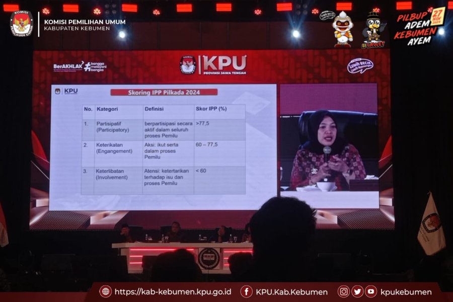 KPU Kabupaten Kebumen hadiri Rapat Kerja Evaluasi Sosialisasi Pendidikan Pemilih dan Peningkatan Partisipasi Masyarakat dalam Penyelenggaran Pemilihan Gubernur dan wakil Gubernur Jawa Tengah, Bupati dan Wakil Bupati serta Walikota dan Wakil Walikota Tahun 2024 Se-Jawa Tengah di Grand Artos Hotel Magelang, selasa s.d kamis (8-10/04). Kegiatan tersebut dihadiri oleh Ketua dan Anggota KPU Provinsi Jawa Tengah, Kesbangpol Provinsi Jawa Tengah, Komisi Informasi Provinsi Jawa Tengah, Humas banprov Jawa Tengah, Kominfo Jawa Tengah, Solo Pos, Anggota KPU Kabupaten/Kota Divisi Sosdiklih Parmas dan SDM Se-Jawa Tengah, Kasubag Parmas dan SDM Se-Jawa Tengah dan Operator Parmas se-Jawa Tengah. Ketua KPU Provinsi Jawa Tengah Handi Tri Ujiono membuka dan sekaligus memberikan sambutan, dalam sambutanya menyampaiakan beberapa hal seperti secara statistik Provinsi Jawa Tengah menjadi yang terbaik selama pelaksanaan Pilkada serentak Tahun 2024. Handi Tri Ujiono menambahkan bahwa tingkat partisipasi kehadiran pemilih tertinggi di Jawa Tengah dalam Pemilihan Bupati dan Wakil Bupati serta Walikota dan Wakil Walokita yaitu Kabupaten Rembang sebesar 86 % (delapan puluh enam persen) dan Kabupaten Kudus. Acara dilanjutkan dengan pemaparan materi, materi pertama oleh Komisi Informasi Provinsi Jawa Tengah dan dilanjutkan dengan materi kedua dari Solo Pos kemudian dilanjutkan dengan pemberian piagam kepada narasumber dan selanjutnya dilakukan sesi foto bersama. pada hari berikutnya dilaksanakan malam citra anugrah Parhumas Pemilihan Gubernur dan Wakil Gubernur Jawa Tengah Tahun 2024 yaitu pemberian penghargaan bagi KPU Kabupaten/kota Se-Jawa Tengan dengan beberapa kategori seperti Pengelolaan Medsos terupdate, Pengelolaan Podcase terbaik, Sosialisasi terunik, Coklit terunik. Sebelum acara ditutup oleh ketua KPU Provinsi Jawa Tengah Handi Tri Ujiono menyampaiakan pesan terkait dengan hubmas ini adalah sarana kelembagaan untuk komunikasi dengan masyarakat, pemilih dan publik yang di dalamnya ada Pendidikan pemilih maupun dengan Pendidikan pemilih pada Masyarakat. Ketua KPU Provinsi Jawa Tengah juga berharap tetap menunjukan eksistensi kelembagaan pasca Pemilu dan Pilkada dengan menunjukan kepada Masyarakat bahwa KPU pacsa Pemilu dan Pilkada tetap bekerja bagaiamana mewujudkan demokratilasi dan demokrasi secara substansial. KPU Kabupaten Kebumen hadiri Rapat Kerja Evaluasi Sosialisasi Pendidikan Pemilih dan Peningkatan Partisipasi Masyarakat dalam Penyelenggaran Pemilihan Gubernur dan wakil Gubernur Jawa Tengah, Bupati dan Wakil Bupati serta Walikota dan Wakil Walikota Tahun 2024 Se-Jawa Tengah di Grand Artos Hotel Magelang, selasa s.d kamis (8-10/04). Kegiatan tersebut dihadiri oleh Ketua dan Anggota KPU Provinsi Jawa Tengah, Kesbangpol Provinsi Jawa Tengah, Komisi Informasi Provinsi Jawa Tengah, Humas banprov Jawa Tengah, Kominfo Jawa Tengah, Solo Pos, Anggota KPU Kabupaten/Kota Divisi Sosdiklih Parmas dan SDM Se-Jawa Tengah, Kasubag Parmas dan SDM Se-Jawa Tengah dan Operator Parmas se-Jawa Tengah. Ketua KPU Provinsi Jawa Tengah Handi Tri Ujiono membuka dan sekaligus memberikan sambutan, dalam sambutanya menyampaiakan beberapa hal seperti secara statistik Provinsi Jawa Tengah menjadi yang terbaik selama pelaksanaan Pilkada serentak Tahun 2024. Handi Tri Ujiono menambahkan bahwa tingkat partisipasi kehadiran pemilih tertinggi di Jawa Tengah dalam Pemilihan Bupati dan Wakil Bupati serta Walikota dan Wakil Walokita yaitu Kabupaten Rembang sebesar 86 % (delapan puluh enam persen) dan Kabupaten Kudus. Acara dilanjutkan dengan pemaparan materi, materi pertama oleh Komisi Informasi Provinsi Jawa Tengah dan dilanjutkan dengan materi kedua dari Solo Pos kemudian dilanjutkan dengan pemberian piagam kepada narasumber dan selanjutnya dilakukan sesi foto bersama. pada hari berikutnya dilaksanakan malam citra anugrah Parhumas Pemilihan Gubernur dan Wakil Gubernur Jawa Tengah Tahun 2024 yaitu pemberian penghargaan bagi KPU Kabupaten/kota Se-Jawa Tengan dengan beberapa kategori seperti Pengelolaan Medsos terupdate, Pengelolaan Podcase terbaik, Sosialisasi terunik, Coklit terunik. Sebelum acara ditutup oleh ketua KPU Provinsi Jawa Tengah Handi Tri Ujiono menyampaiakan pesan terkait dengan hubmas ini adalah sarana kelembagaan untuk komunikasi dengan masyarakat, pemilih dan publik yang di dalamnya ada Pendidikan pemilih maupun dengan Pendidikan pemilih pada Masyarakat. Ketua KPU Provinsi Jawa Tengah juga berharap tetap menunjukan eksistensi kelembagaan pasca Pemilu dan Pilkada dengan menunjukan kepada Masyarakat bahwa KPU pacsa Pemilu dan Pilkada tetap bekerja bagaiamana mewujudkan demokratilasi dan demokrasi secara substansial.
