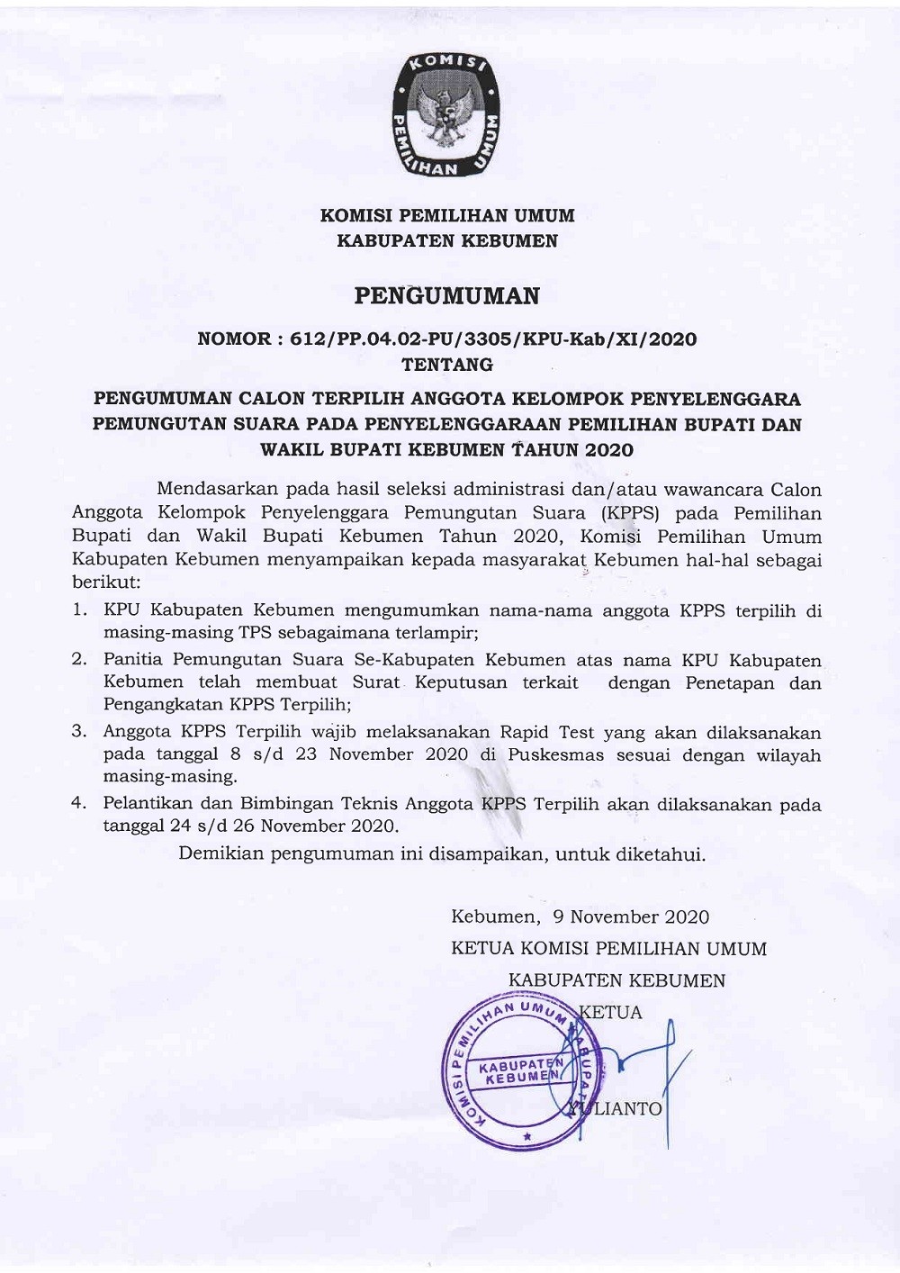 Kebumen - Sejak ditetapkan pada 28 September 2020 dan menjalani bimbingan teknis kepemiluan pada tanggal 30 September 2020, sebanyak 15 orang Relawan Demokrasi berbasis warganet menjalankan tugas kemitraan yang sinergis dengan KPU Kabupaten Kebumen untuk memberikan sosialisasi terkait pelaksanaan Pilbup Kebumen 2020. Masa tugas Relawan Demokrasi adalah dua bulan terhitung mulai 1 Oktober hingga 30 November 2020. Selama masa tugas tersebut, Relawan Demokrasi wajib melaporkan kegiatan apa saja yang telah dilakukan untuk mensosialisasikan Pilbup Kebumen 2020.