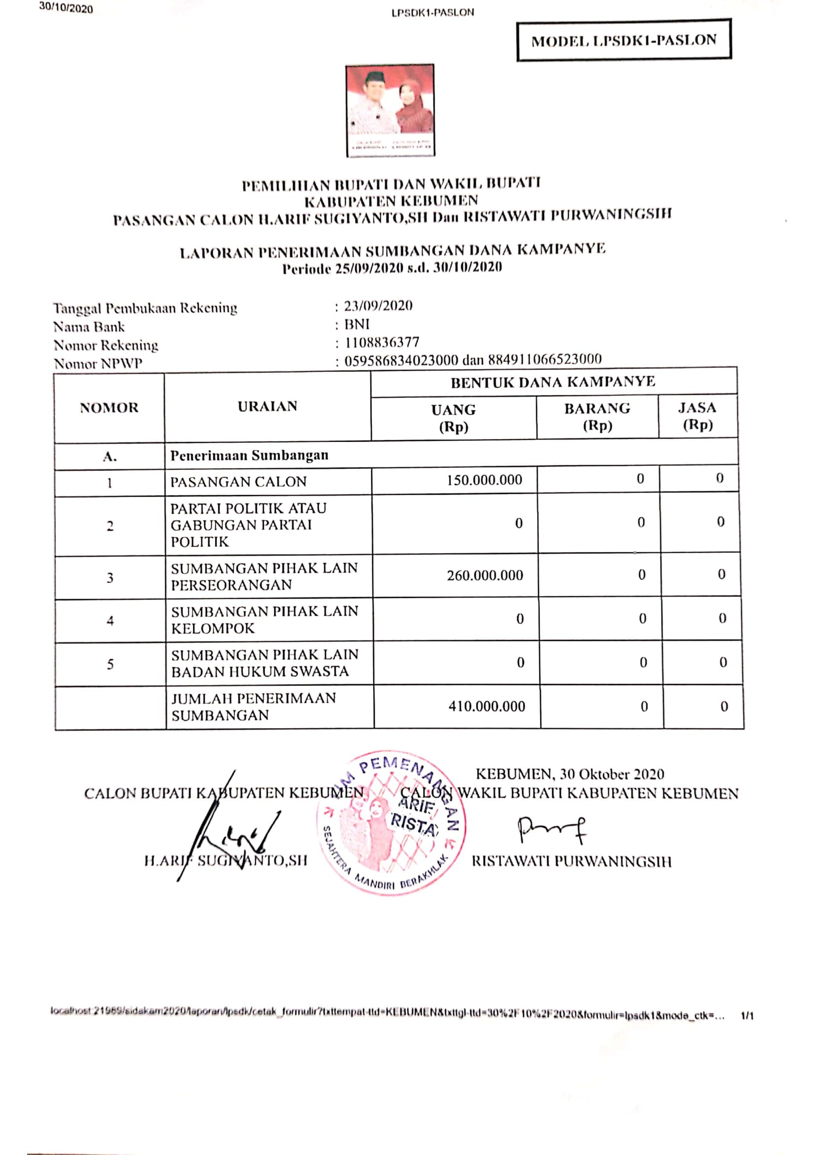 Laporan kegiatan tahap pertama, untuk pelaksanaan kegiatan bulan Oktober, telah dilaksanakan pada Kamis (5/11), di Kantor KPU Kebumen. Kegiatan laporan sekaligus evaluasi program dan konten ini dipimpin langsung oleh Anggota KPU Kebumen Divisi Sosdiklih, Parmas dan SDM, Agus Hasan Hidayat. Dalam kegiatan tersebut, masing-masing relawan mempresentasikan kegiatan sosialisasi masing-masing. Dengan kegiatan ini diharapkan kinerja relawan demokrasi berbasis warganet semakin baik dan memberikan hasil yang signifikan dalam meningkatkan partisipasi pemilih untuk menunaikan hak dan kedaulatannya ke TPS pada tanggal 9 Desember 2020 nanti.