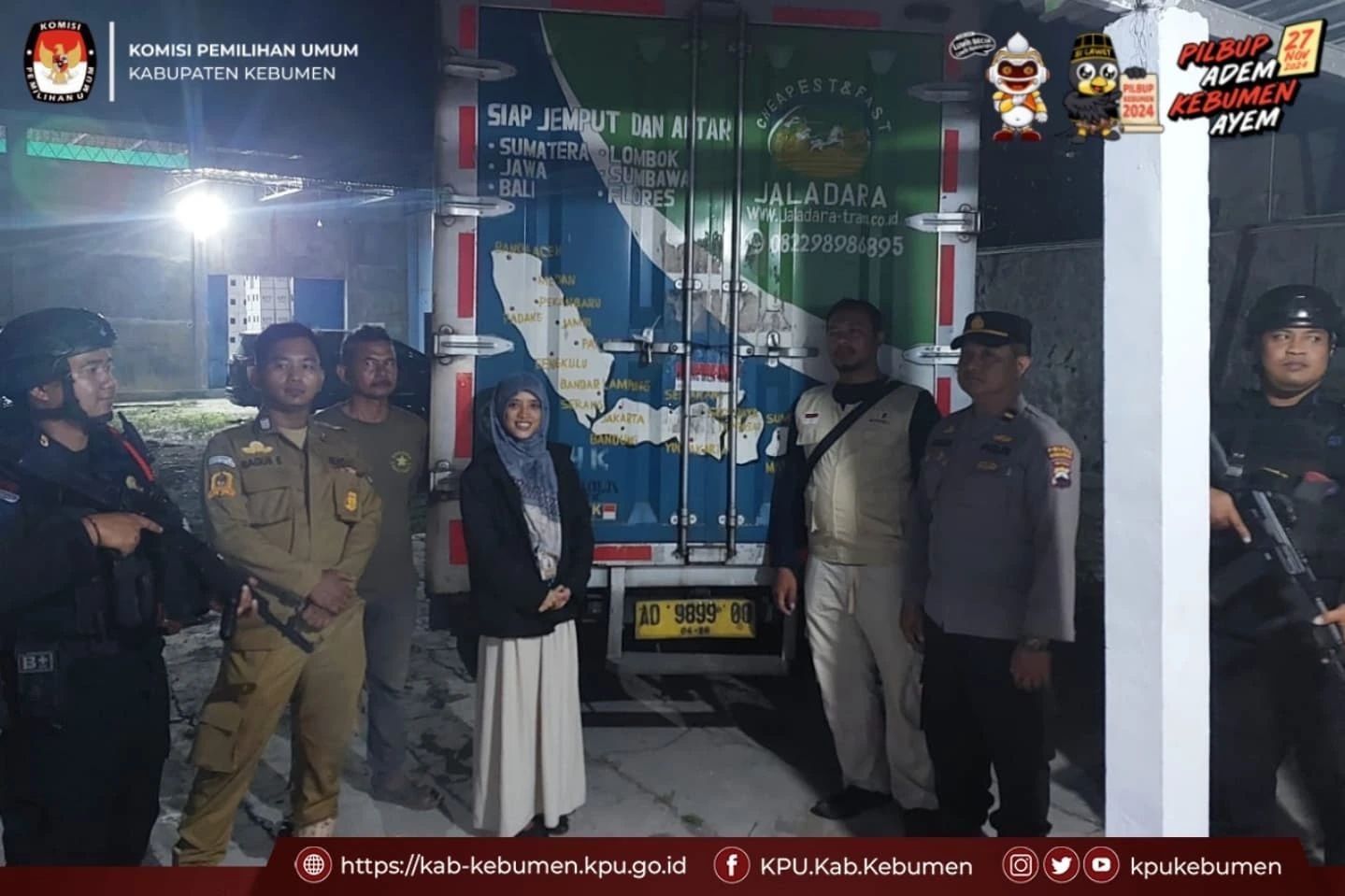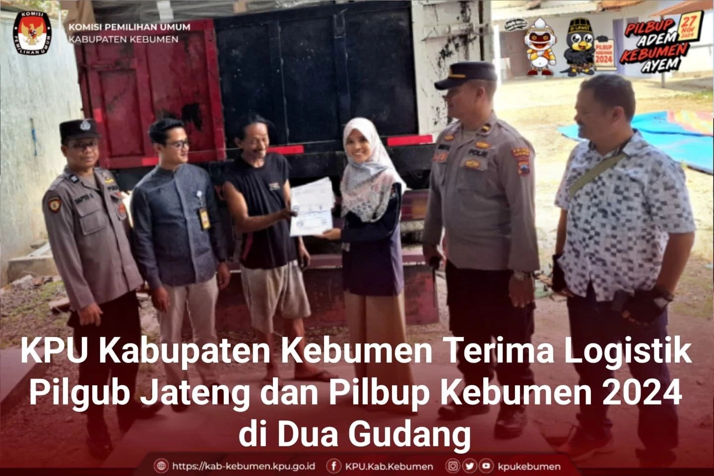 KPU Kabupaten Kebumen telah menerima logistik surat suara untuk pelaksanaan Pemilihan Gubernur dan Wakil Gubernur Jawa Tengah serta Pemilihan Bupati dan Wakil Bupati Kebumen tahun 2024. Penyerahan logistik ini berlangsung di dua lokasi pada Rabu 23 Oktober 2024. Surat Suara diterima oleh Kasubag Keuangan, Umum, dan Logistik KPU Kebumen, Rizkia Farikha, S.I.Kom. Adapun surat suara untuk pemilihan Bupati dan Wakil Bupati Kebumen diterima di Gudang Surotrunan pada pukul 04.20 WIB. Logistik yang diterima meliputi 1.105.312 lembar surat suara untuk pemilihan serta 2.000 lembar surat suara untuk pemungutan suara ulang. Sehingga total keseluruhan surat suara yang diterima untuk Pilbup Kebumen berjumlah 1.107.312 lembar. Pengiriman surat suara ini dilakukan oleh CV. Arya Duta dari Cibinong, Bogor.Sementara itu, surat suara untuk Pemilihan Gubernur dan Wakil Gubernur Jawa Tengah tiba di Gudang Muktisari pada pukul 19.30 WIB. Sebanyak 1.105.312 lembar surat suara diterima dari PT. Gramedia. Dengan diterimanya logistik ini, KPU Kabupaten Kebumen siap untuk melanjutkan persiapan pelaksanaan pemilihan pada tanggal 27 November 2024 mendatang. Rizkia Farikha menyatakan bahwa proses distribusi surat suara ke seluruh kecamatan akan dilakukan dengan cermat dan sesuai dengan prosedur yang telah ditetapkan.